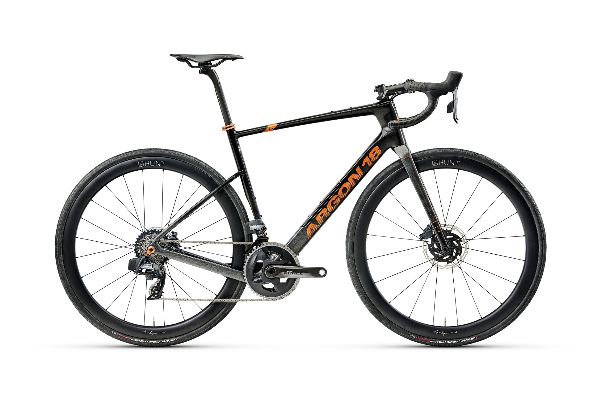 Colorway Crystal Black/Copper, GlossFrame Krypton ProFork Krypton ProSeatpost Argon 18 CarbonHeadset FSA SRS with 3DBB TOKEN DUB T47Front derailleur SRAM Force eTAP AXSRear derailleur SRAM Force eTAP AXS (MAX 33T)Crankset SRAM Force DUB 48/35Cassette SRAM XG 1270 10-33 XDRChain SRAM Force 12S 114LWheelset Hunt 44 Aerodynamicist Disc with XDRTires Vittoria Rubino Pro G2.0 TLR 700x30cBrakes SRAM Force eTap AXSRotors SRAM Centerlock Centerline XR / F:160mm R:140mmBrake levers SRAM Force eTap AXSShifters SRAM Force eTap AXSHandlebar FSA SL-K SCR CompactStem FSA OS-99Bar Tape Ciclovation Leather Touch Tornado GlossSaddle Repente Quasar CR