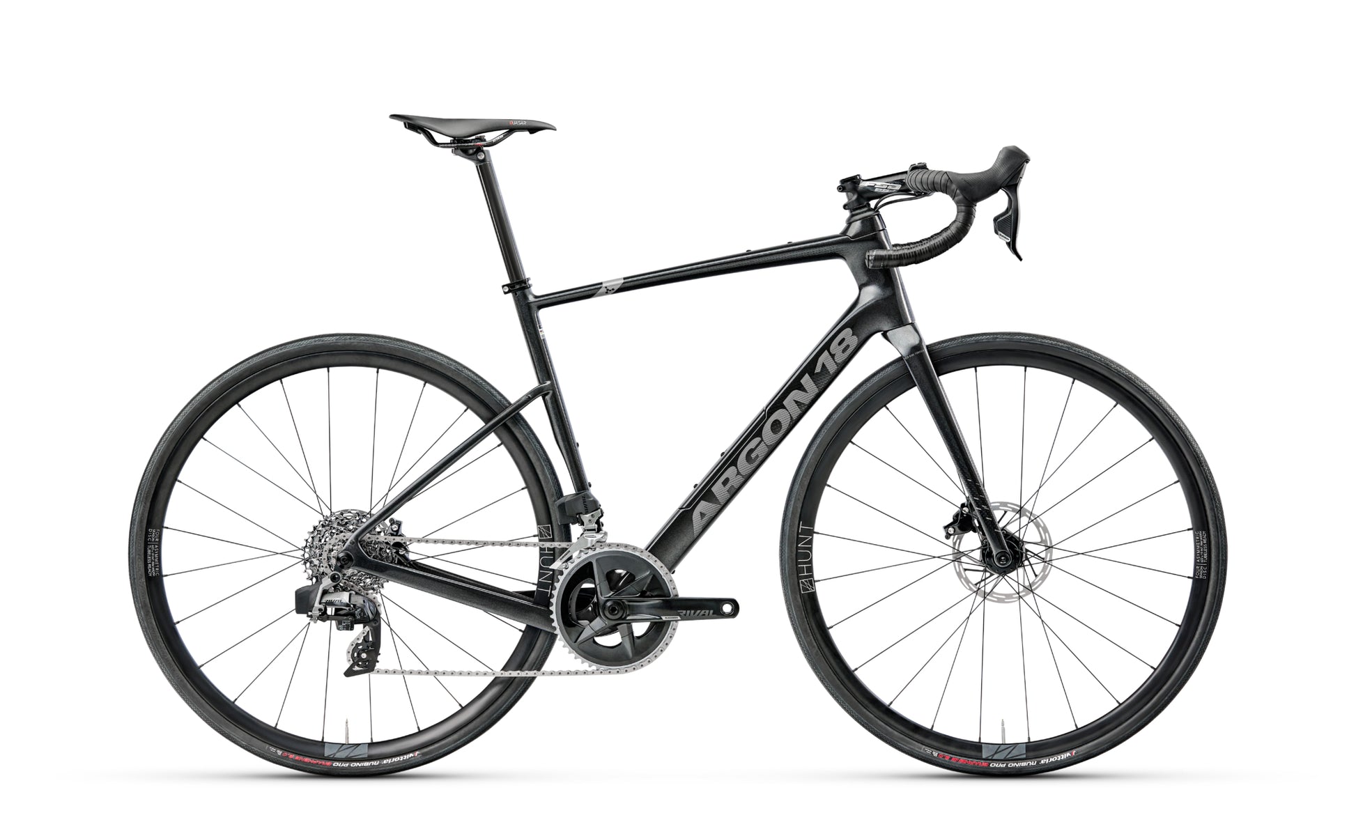 Colorway Iridescent Charcoal, Gloss or Frostbite Blue, GlossFrame KryptonFork KryptonSeatpost Argon 18 CarbonHeadset FSA SRS with 3DBB TOKEN DUB T47Front derailleur SRAM Rival eTap AXSRear derailleur SRAM Rival eTap AXS MAX 36TCrankset SRAM Rival AXS DUB 48/35Cassette SRAM Rival AXS Wide XG 1250 10-36Chain SRAM Rival 12S 114LWheelset Hunt 4 Season DISC with XDRTires Vittoria Rubino Pro G2.0 700x30cBrakes SRAM Rival eTap AXSRotors SRAM Centerlock Paceline / F:160mm R:140mmBrake levers SRAM Rival eTap AXSShifters SRAM Rival eTap AXSHandlebar FSA Energy SCR CompactStem FSA EnergyBar Tape Ciclovation Leather Touch Tornado GlossSaddle Repente Quasar