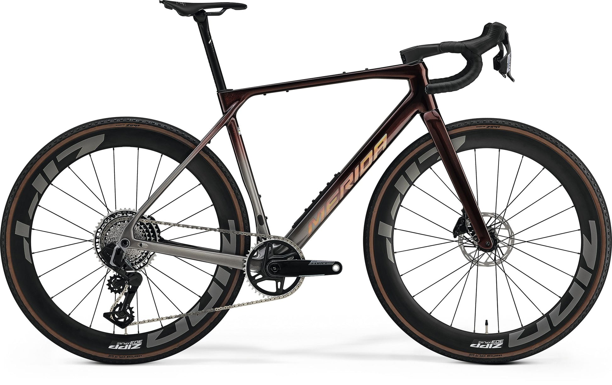 It's fast and responsive yet highly controllable when the going gets rough. Our Mission 9000 features our newly created CF4 Mission frame with race-focused geometry that doesn't Compromise on control when your next gravel race throws in a washboard descent for good measure. Equipped with the finest gravel racing Components, including the latest 13-speed SRAM groupset, a Merida one-piece carbon cockpit and a race-ready Zipp carbon wheelset, the Mission 9000 feels at home on any surface, gravel or otherwise.